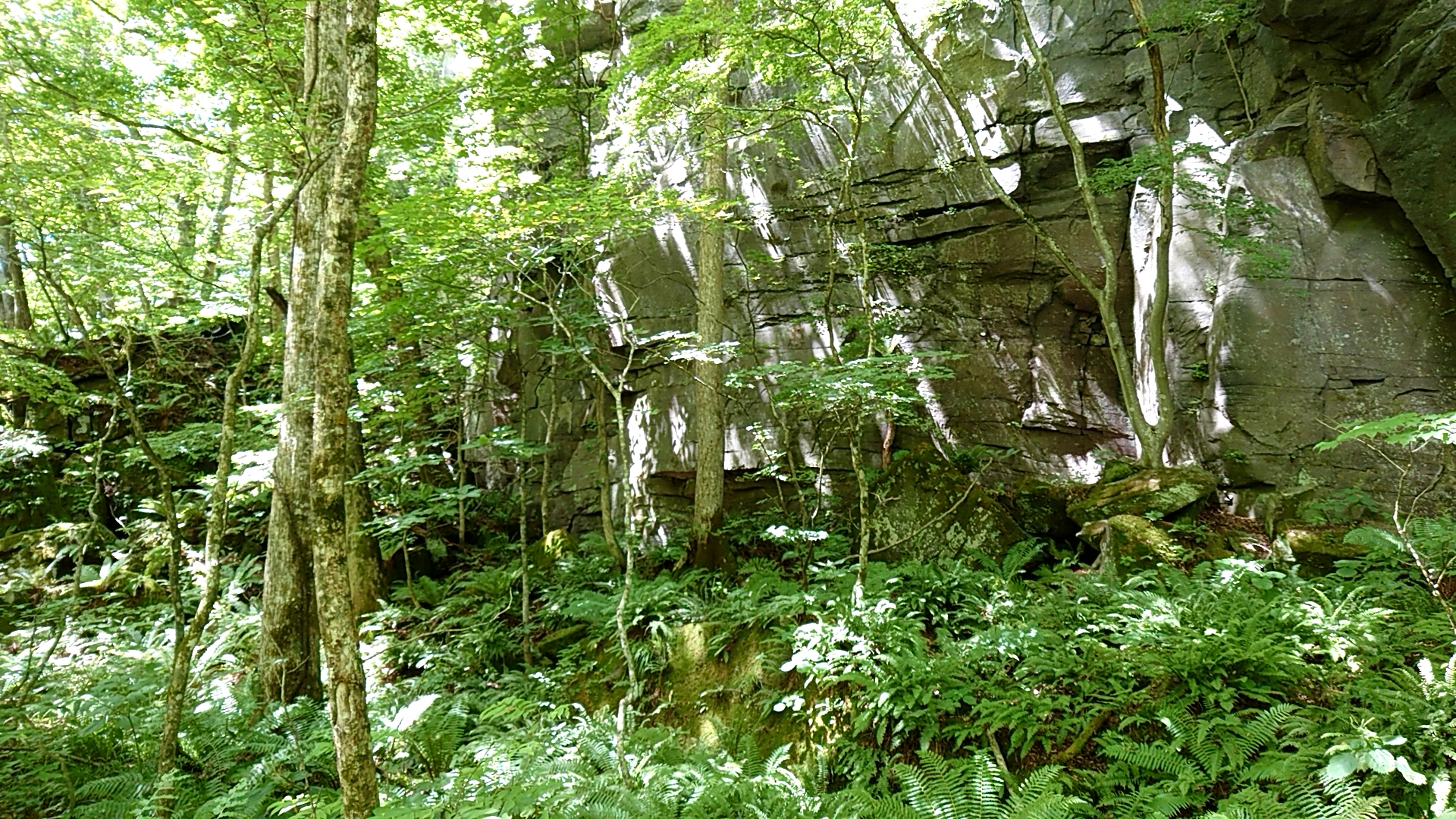 「その岩の形は、長い年月をかけてあそこの崖から崩れたためです」