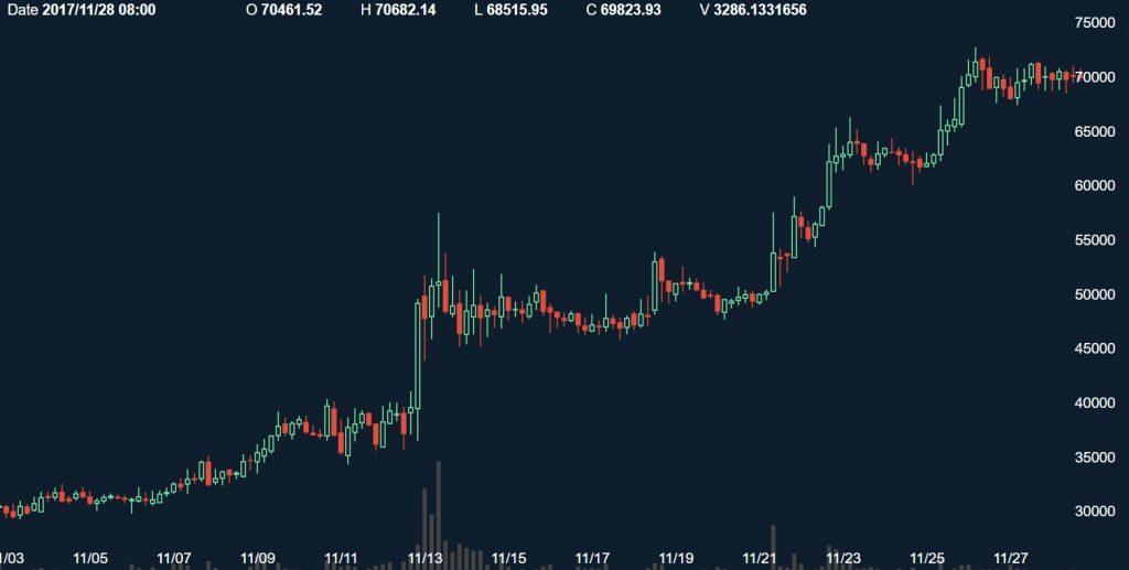 具体的にどれぐらい仮想通貨が爆上げしているのかを挙げると、