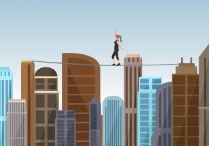 ビルとビルの間の綱と運動場の白線は、その太さは同じであっても、リスクを負っているかどうかで天と地の差があり、