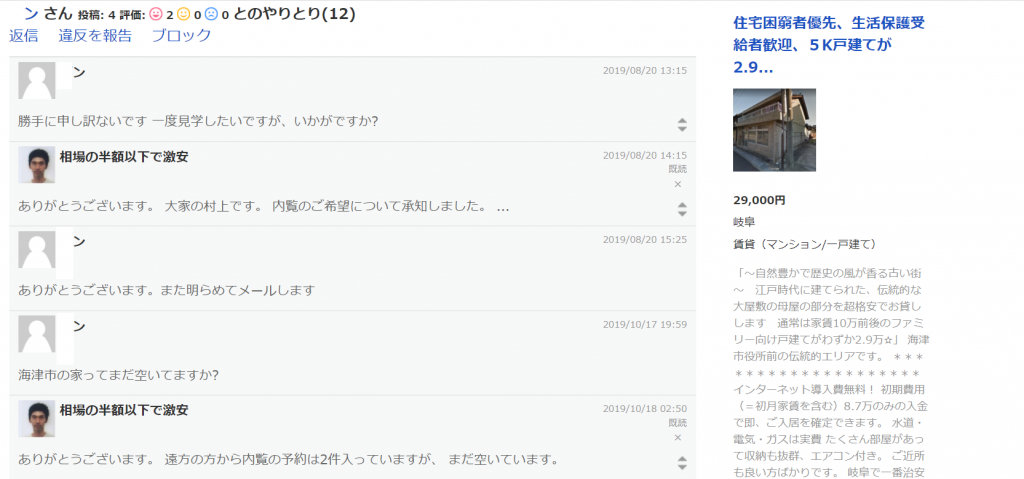 ただ、多くは頭が悪過ぎる人や、   常にお金を踏み倒したり   糞尿を散乱させたりするような異常者です。     基本的には不動産屋に門前払いされ、断られる人です。     保証会社の審査にはまず通りません。     貯金もなく仕事もなく保証人も友達もいません。     家族や親類とも絶縁しています。     トイレではなく、和室や洋室で糞尿を排出します。     すでに生活保護を受給している人ならラッキーで、かなりの高属性です。     ジモティーに物件を掲載すれば、すぐに問い合わせがたくさん来ますが、   多くはそのような人なので、厳重に警戒することを強くお勧めせざるを得ません。     リスクを気にせずかなり楽観的な私ですらそう思います。   (written by 廃墟不動産投資家 廃墟不動産投資チャンネル