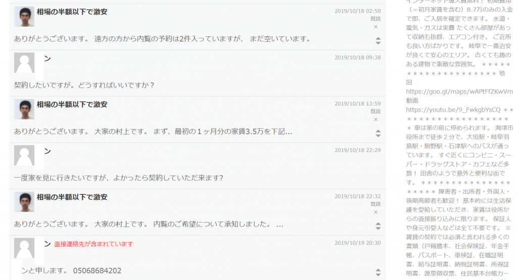 しかし、ジモティーを利用する人の多くは、普段では関わり合えないほど知的水準が低く、   先進国である日本では到底考えられないほど貧しいです。     具体的には、日本人であるにも関わらずベーシックな日本語がほぼ通じず、   契約の際の総初期費用が5万とか6万でも、   分割払いを要求してきます。     ジモティーから普通の入居者を見つけることは、     そろそろ刑期を終える出所予定者から   優良な社員を募集するのと酷似しています。       比率で言えば、出所者にかなり失礼かもしれません。     カリスマ経営者の堀江貴文さんも服役していたぐらいです。     もちろん、一部のジモティー利用者にはごく普通の人や、   逆に大変誠実な人もこっそり混じっています。