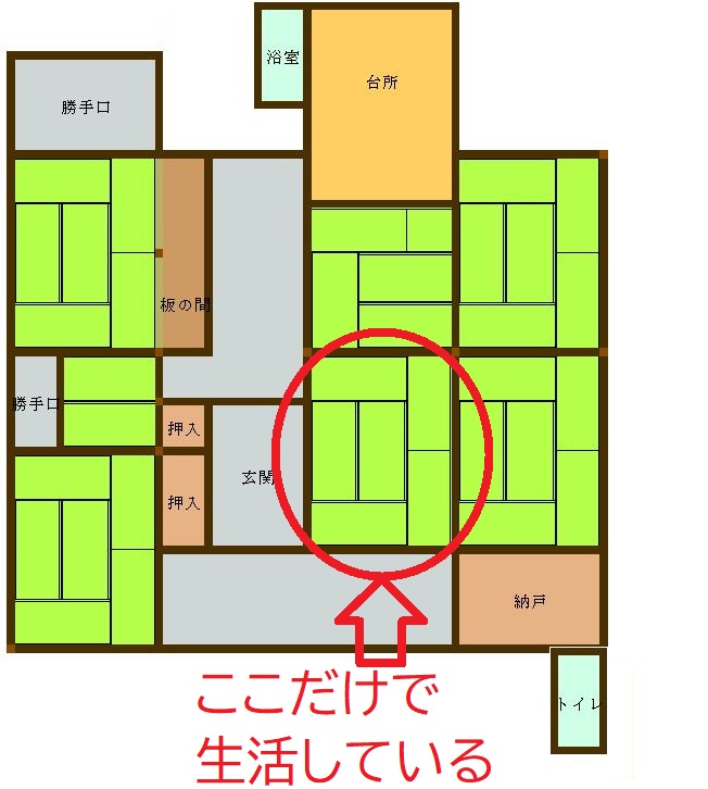 例えば7部屋の日本屋敷に住む一人暮らしのお婆さんは、