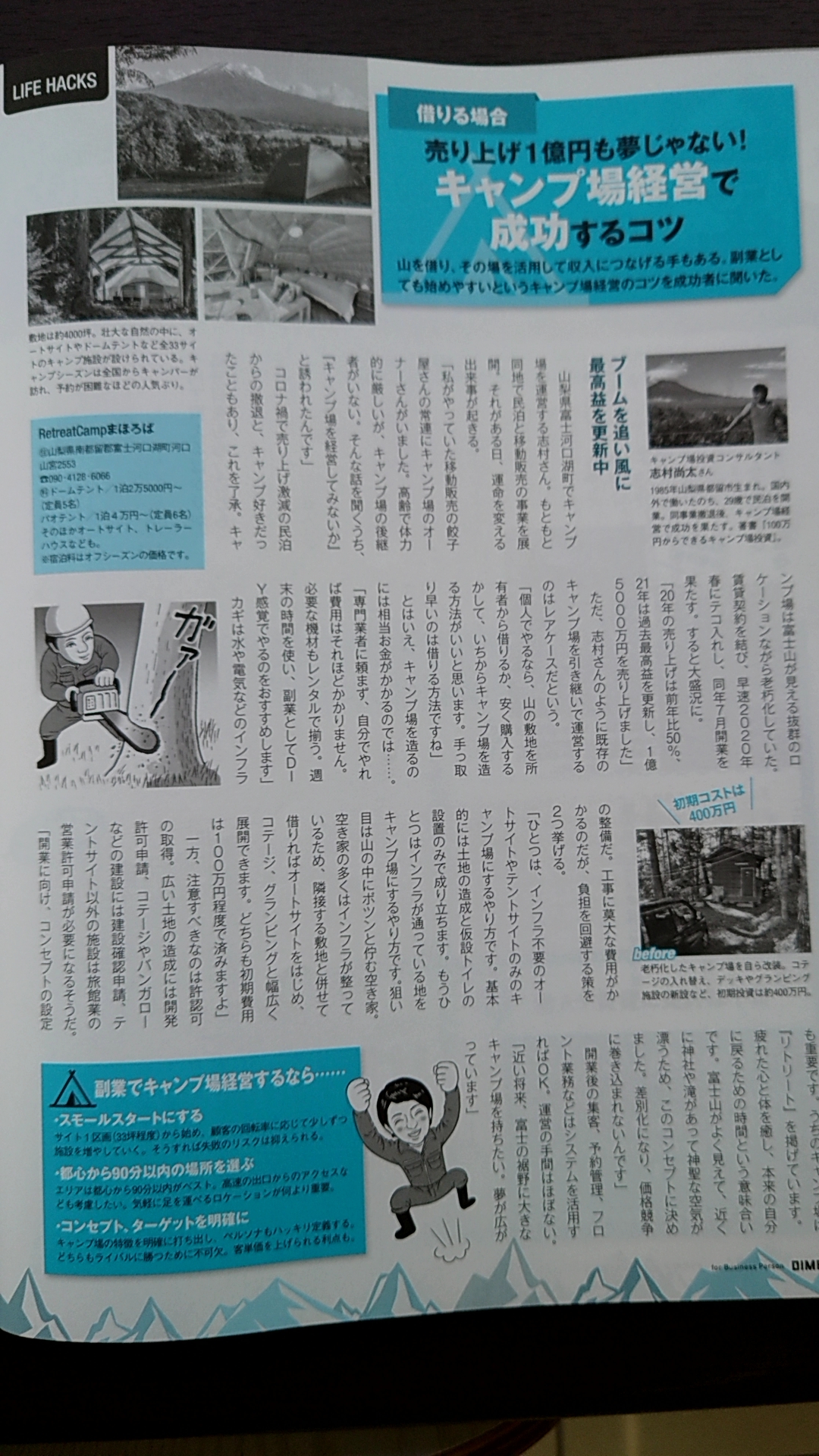 そして、キャンプ場のカリスマ経営者である志村さんのノウハウのように、その山をキャンプ場として活用するのです。