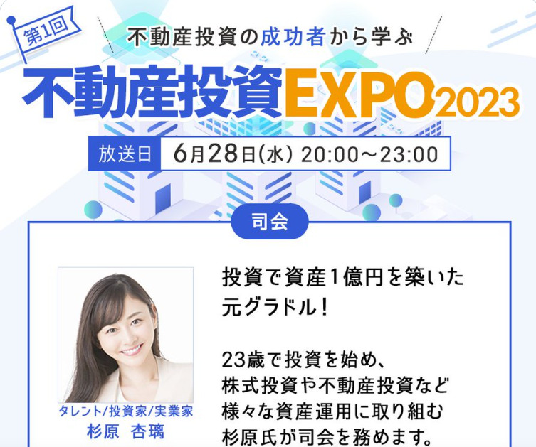 6月28日(水)20時〜不動産投資EXPO2023に出演します