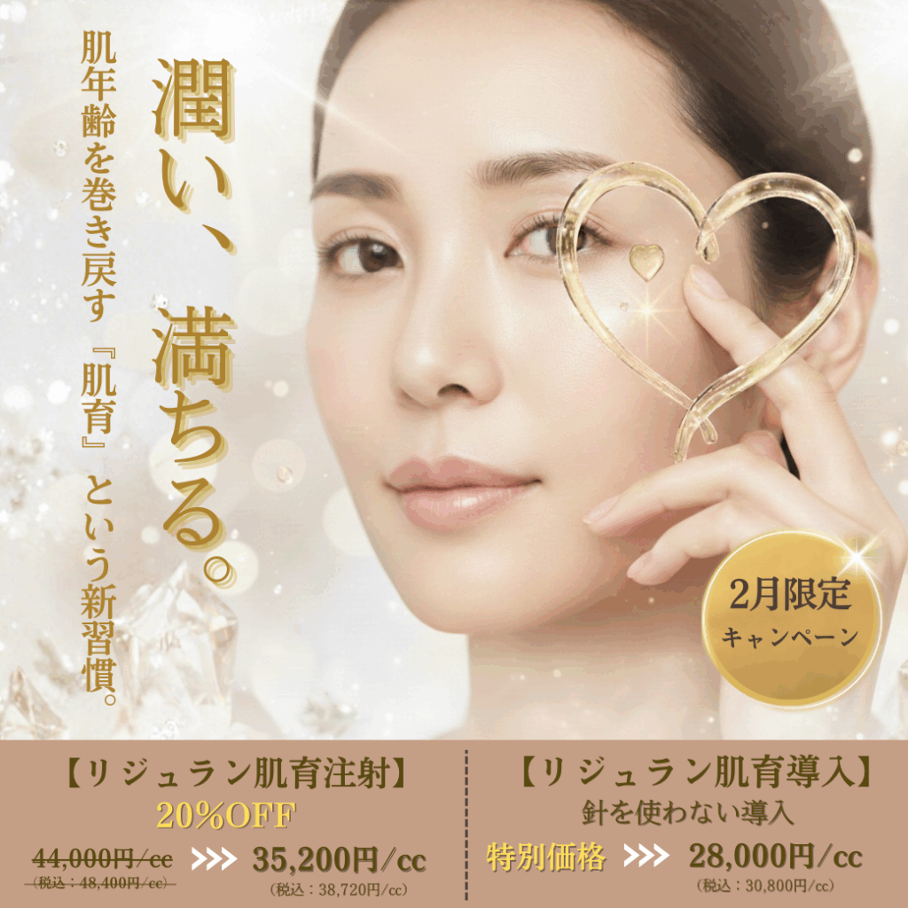 • 【リジュラン肌育注射】20% OFF 内側から弾力のある潤い肌へ。 通常価格 44,000円 ⇒ 特別価格 35,200円/cc(税込 38,720円)